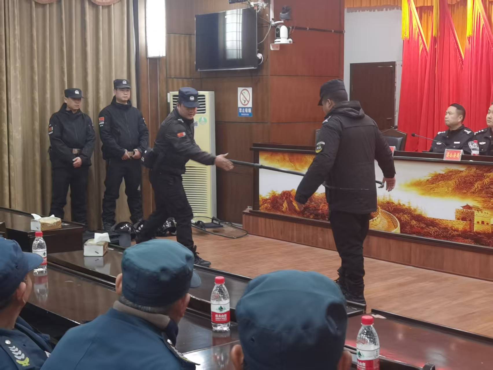 會議由金劍保安公司靖州分公司負(fù)責(zé)人田勇主持。會上,靖州縣公安局治安大隊(duì)長石茗杭警官結(jié)合當(dāng)前校園安全形勢,深入剖析典型案例,強(qiáng)調(diào)保安員作為校園安全“第一道防線”的重要性。他要求全體保安員強(qiáng)化責(zé)任擔(dān)當(dāng),熟練掌握安防器械使用技能,嚴(yán)格落實(shí)校園出入登記、巡邏防控和應(yīng)急處突機(jī)制,積極配合公安、教育部門織密“人防、物防、技防”安全網(wǎng),切實(shí)保障師生生命財(cái)產(chǎn)安全。