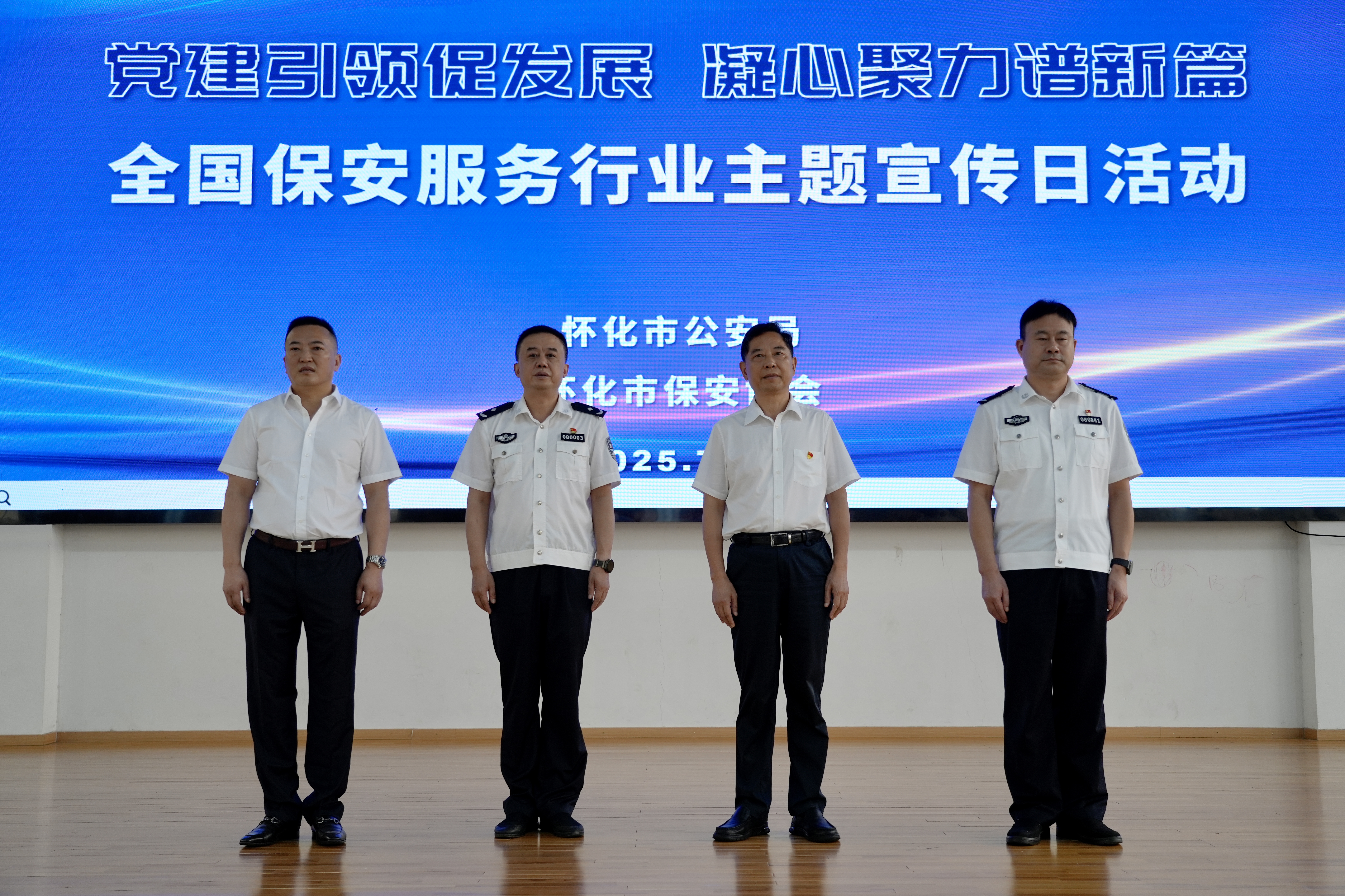 7 月 24 日,盛夏細(xì)雨,涼意不斷。懷化金劍、亮劍保安公司全體管理人員及十余名保安人員與懷化市各保安公司代表一道,共同參加了由懷化市公安局主辦、懷化市保安協(xié)會(huì)承辦的 “黨建引領(lǐng)促發(fā)展,凝心聚力譜新篇” 全國(guó)保安服務(wù)行業(yè)主題宣傳日活動(dòng)。此次活動(dòng)不僅為保安行業(yè)搭建了交流與展示的平臺(tái),更彰顯了黨建引領(lǐng)下保安服務(wù)行業(yè)蓬勃發(fā)展的活力與決心。