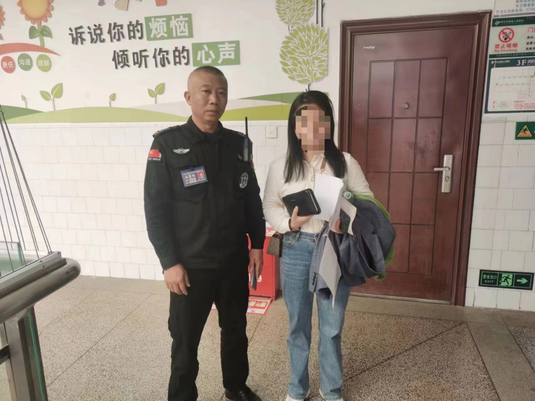 失主拿著失而復得到的錢包,非常激動,連連感謝保衛(wèi)科工作人員及張春等保安隊員。四醫(yī)院保衛(wèi)科領導和保安服務公司領導對張春拾金不昧、尋找失主的好人好事,也給與了通報表揚。