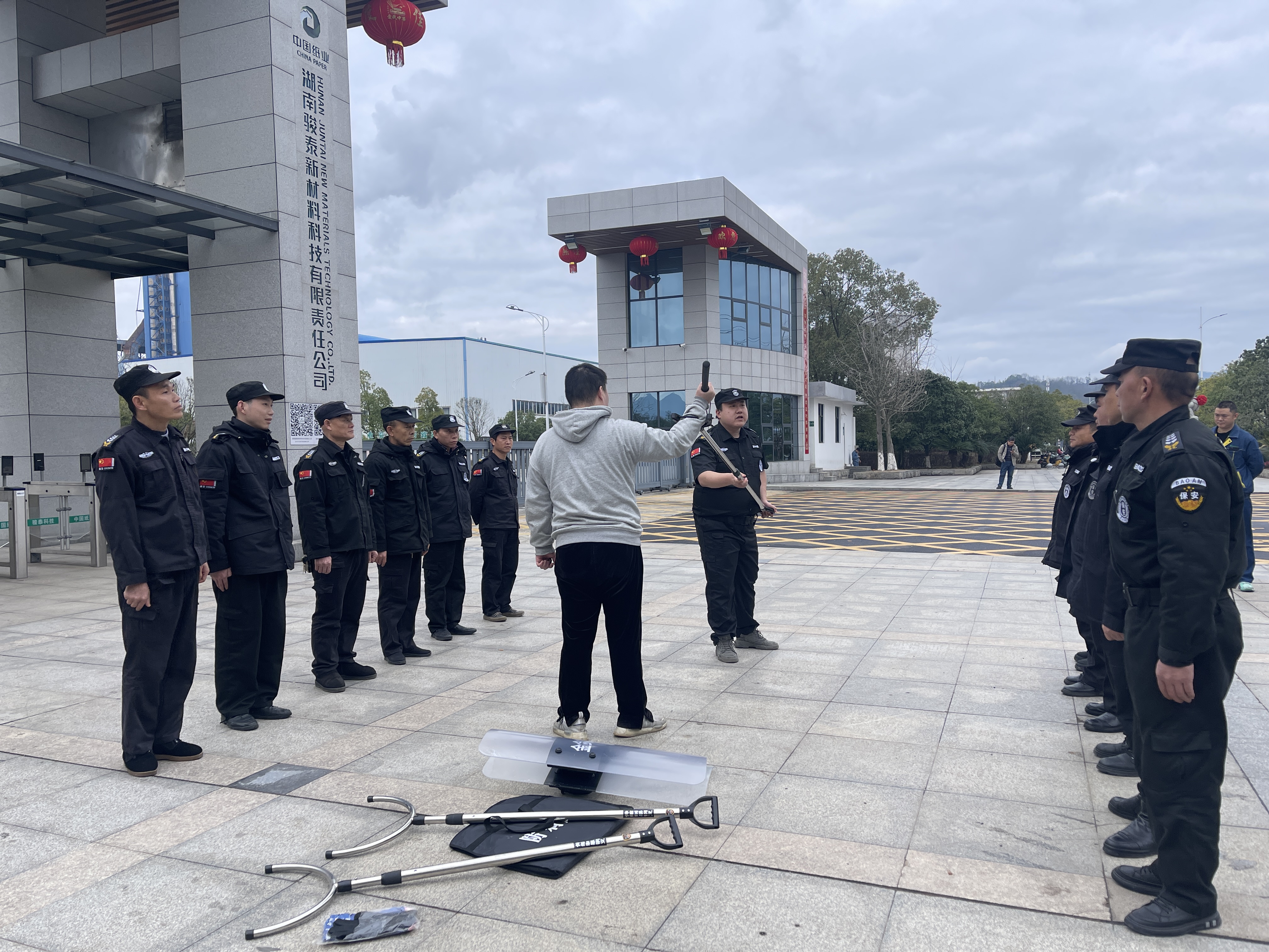 為全面提升駐企保安隊伍的綜合素質(zhì)和應(yīng)急處突能力,切實保障客戶單位人員及財產(chǎn)安全,懷化亮劍保安服務(wù)有限公司駐湖南駿泰新材料有限公司保安隊于2025年2月月27日在懷化經(jīng)開區(qū)企業(yè)園區(qū)組織開展為期一天的軍體素質(zhì)強化訓(xùn)練及反恐防暴實戰(zhàn)演練,以“練為戰(zhàn)、戰(zhàn)必勝”的實戰(zhàn)導(dǎo)向,鍛造一支作風(fēng)過硬、技能精湛的安保鐵軍。