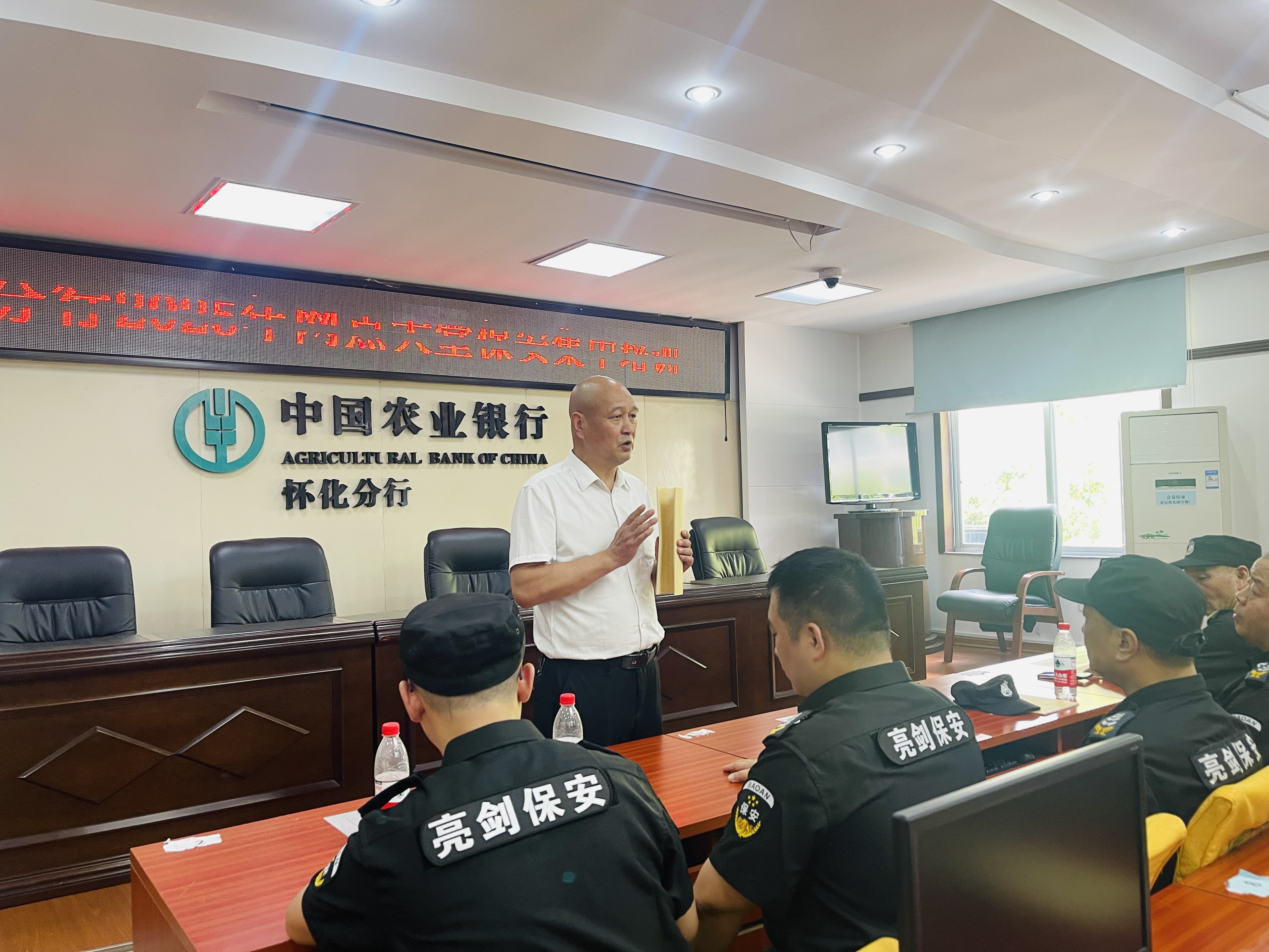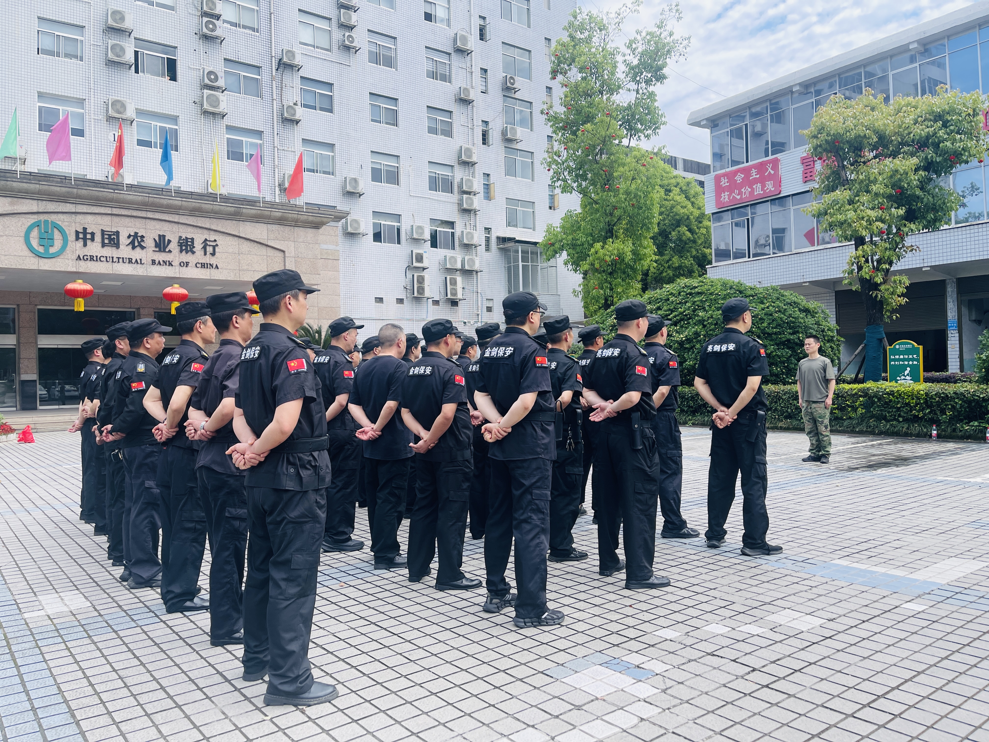 全員斗酷暑,實戰(zhàn)練兵忙。懷化金劍亮劍保安服務(wù)有限責任公司堅持以練為戰(zhàn),以戰(zhàn)促訓(xùn),近日在中國農(nóng)業(yè)銀行懷化分行舉辦銀行大堂保安集中培訓(xùn)。該公司全體管理人員、公司派駐懷化城區(qū)各支行網(wǎng)點54名大堂保安參訓(xùn)。