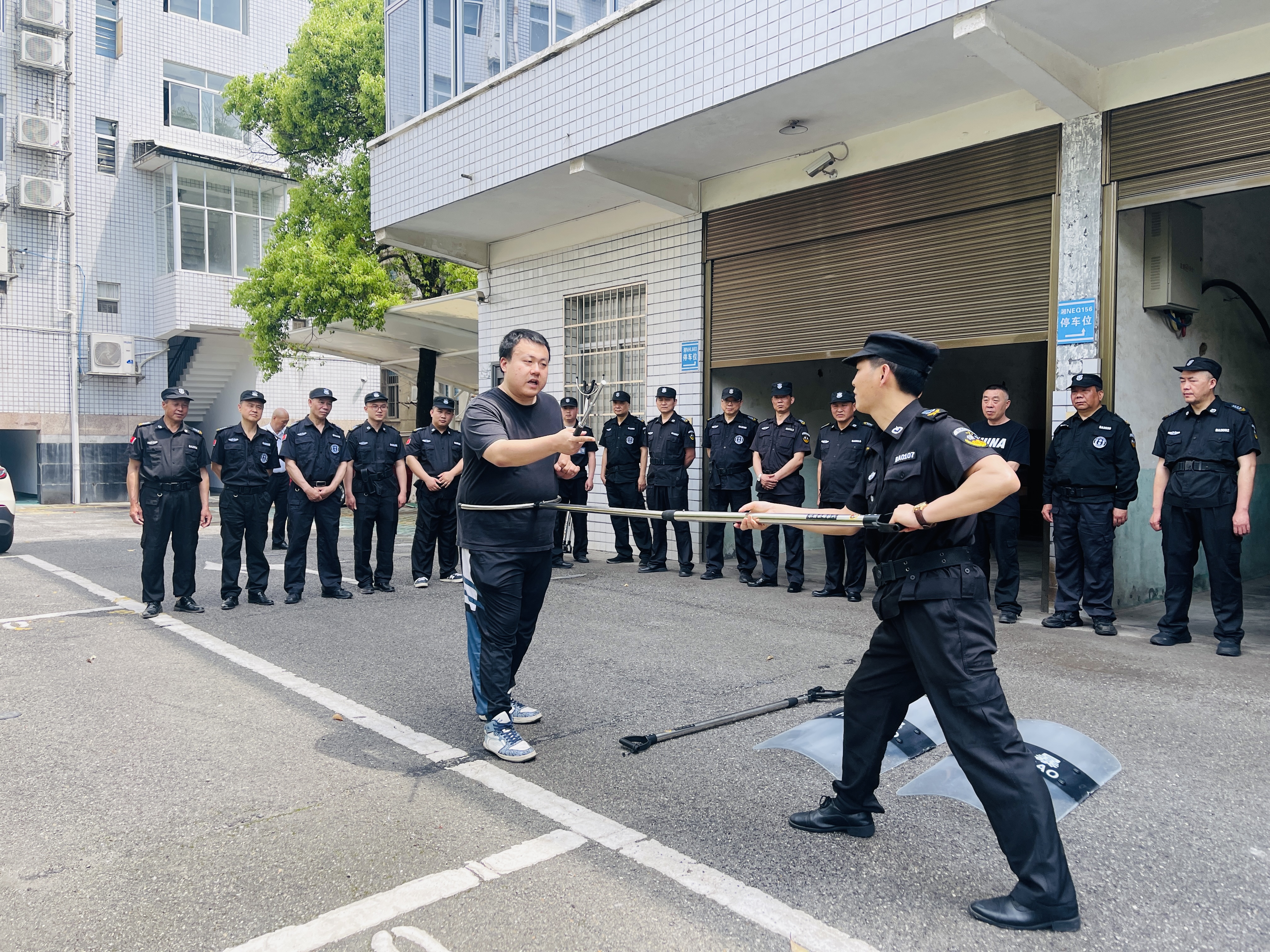 在警械操作及反恐防暴演練的培訓(xùn)中,教官逐一講解了警棍、盾牌、鋼叉和多功能抓捕器等警用器械的使用方法,以及消防器材的操作技巧,進行了細致的手把手教學(xué)。