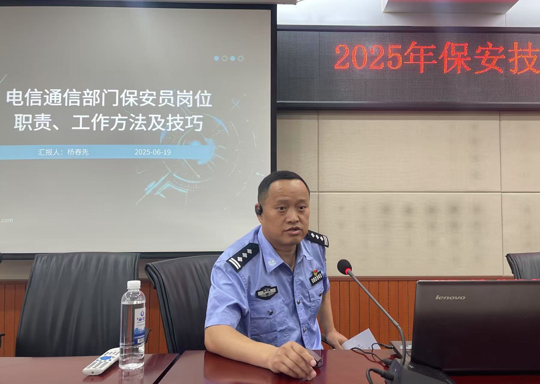 隨后,懷化市公安局鶴城分局治安大隊副大隊長楊春先為保安人員帶來了一場精彩的專題講座。講座圍繞 “通信部門保安員崗位職責(zé)、工作方法及技巧” 展開,楊副大隊長憑借豐富的實戰(zhàn)經(jīng)驗和專業(yè)知識,深入淺出地講解了通信部門安保工作的特點與重點。他從保安員的基本職責(zé)出發(fā),詳細(xì)闡述了日常巡邏、門禁管理、突發(fā)事件應(yīng)對等工作的規(guī)范流程和實用技巧,并結(jié)合實際案例,生動地剖析了在工作中可能遇到的各種問題及解決方法。參訓(xùn)人員認(rèn)真聆聽,仔細(xì)記錄,紛紛表示受益匪淺。