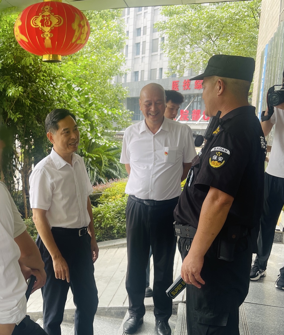 下午,溫暖的氛圍持續(xù)蔓延。譚和平會(huì)長(zhǎng)等領(lǐng)導(dǎo)不辭辛勞,專程來到我公司派駐懷化市中醫(yī)醫(yī)院的保安崗位,對(duì)所有堅(jiān)守在此的保安人員進(jìn)行了親切慰問。在懷化市中醫(yī)醫(yī)院,領(lǐng)導(dǎo)們仔細(xì)察看了保安人員的工作環(huán)境,了解他們的值班安排、安全保障措施等情況。當(dāng)看到保安人員們精神抖擻、認(rèn)真負(fù)責(zé)地堅(jiān)守在各自崗位上,為醫(yī)院的正常秩序和患者的安全保駕護(hù)航時(shí),領(lǐng)導(dǎo)們給予了高度贊揚(yáng)。他們與保安人員親切交談,叮囑大家在做好本職工作的同時(shí),一定要注意自身安全,勞逸結(jié)合。一句句暖心的話語,一個(gè)個(gè)關(guān)切的眼神,讓堅(jiān)守在一線的保安人員們深受感動(dòng),大家紛紛表示,絕不辜負(fù)領(lǐng)導(dǎo)的期望,將以更高的責(zé)任心和使命感做好醫(yī)院的安保工作,為醫(yī)患營(yíng)造安全、和諧的環(huán)境。