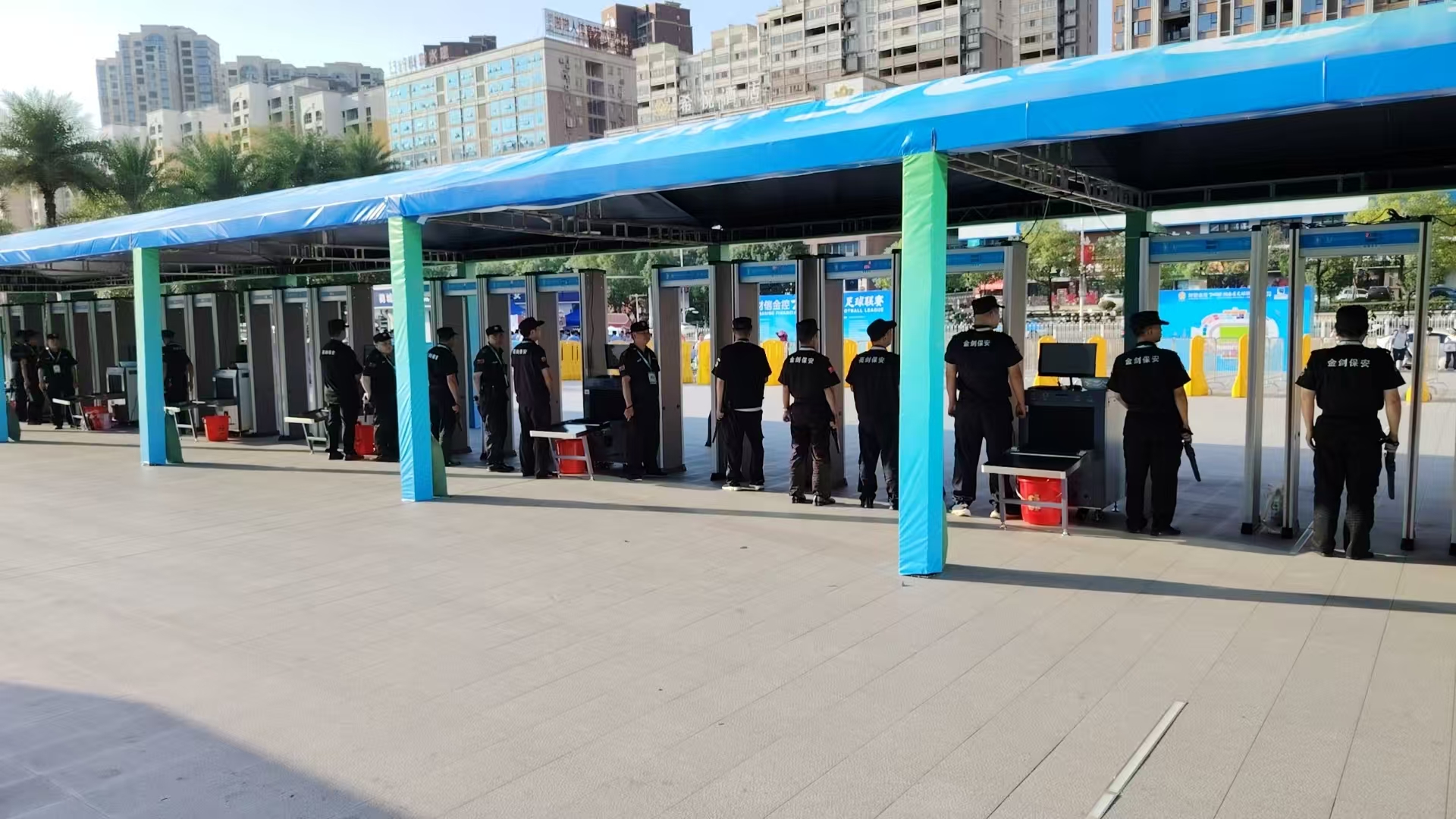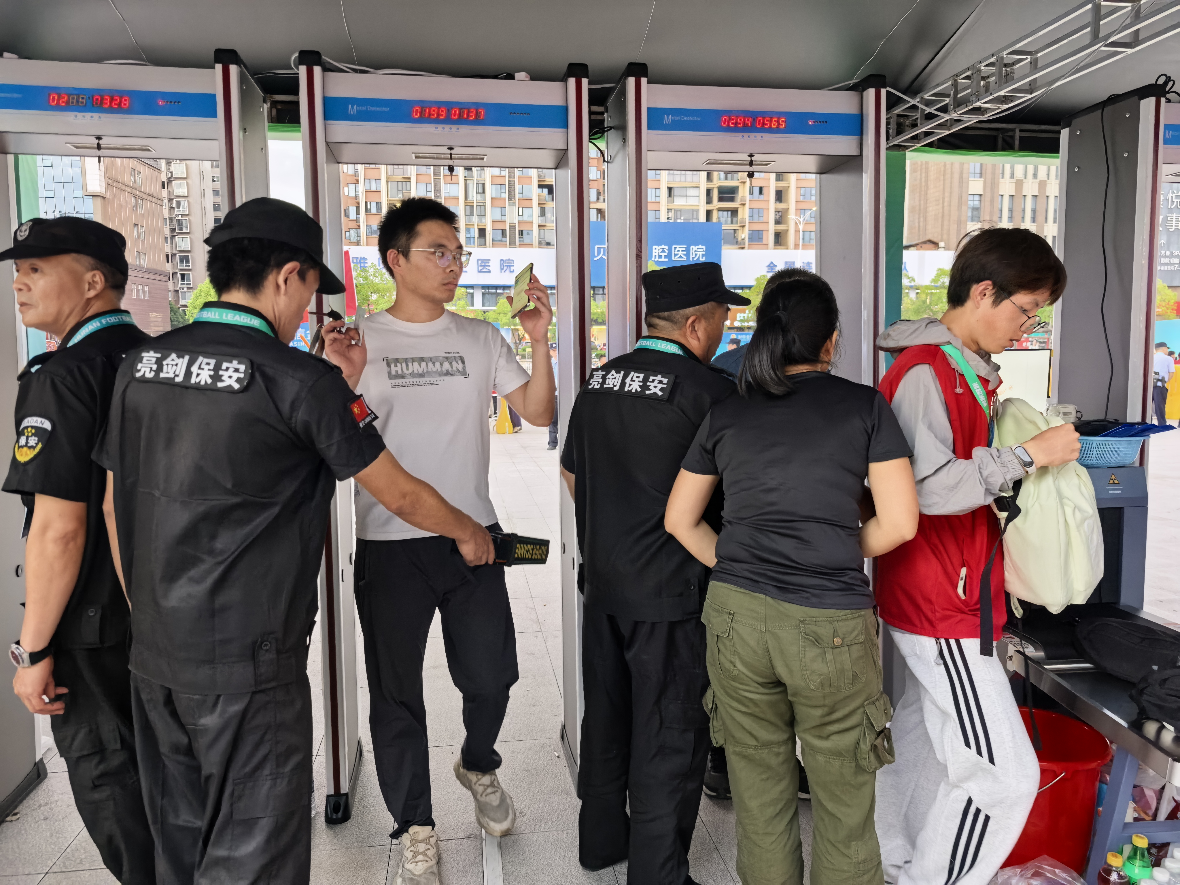 懷化金劍保安公司、懷化亮劍保安服務(wù)有限公司在這次賽事中,具體負(fù)責(zé)體育中心外圍進(jìn)場(chǎng)的安檢工作。此次主場(chǎng)比賽有1.5萬多名觀眾進(jìn)場(chǎng),安檢任務(wù)壓力極大。為做好進(jìn)場(chǎng)安檢工作,金劍保安服務(wù)有限公司董事長(zhǎng)向其華率先垂范,在比賽前幾天一直撲在安保現(xiàn)場(chǎng),參與對(duì)安檢儀器擺放和測(cè)試,確保安檢門檢測(cè)儀靈敏有效。同時(shí)組織隊(duì)員數(shù)十次進(jìn)行模擬演練,熟練掌握、操控安檢儀器。